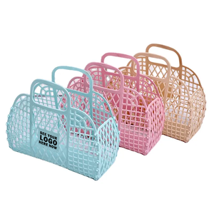 Personalizado Retro Vintage Plegable Plástico Pvc Jelly Basket Tote Bag Beach Bag Bolso Monedero Para Niñas Mujeres Party Favor Bags